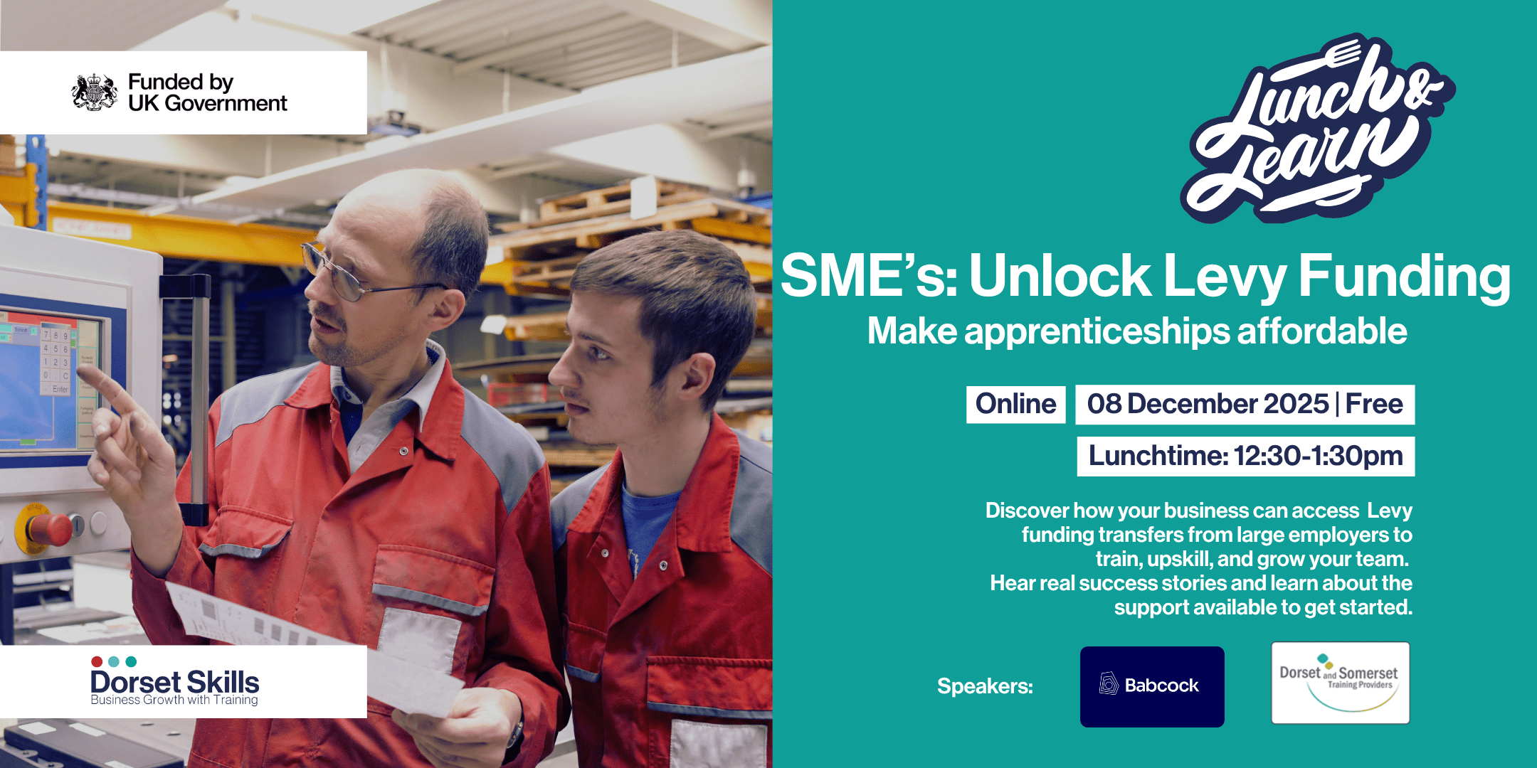 This practical Lunch & Learn webinar hosted by Dorset Skills will share real examples of organisations already benefiting from Levy support, alongside clear guidance on how to get started.